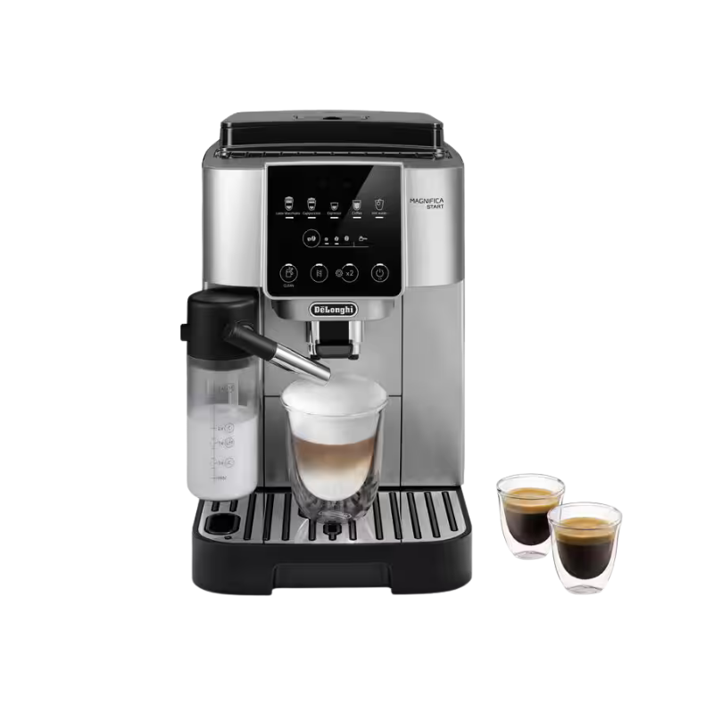 Descubrí el universo del café en casa con la De’Longhi Magnifica Start. Esta cafetera superautomática te brinda todo lo necesario para disfrutar de tus bebidas favoritas a base de espresso sin salir de tu cocina. Gracias a su innovadora Tecnología LatteCrema Hot, cada preparación se corona con una espuma de leche suave, cremosa y a la temperatura ideal, ¡lista con solo presionar un botón!