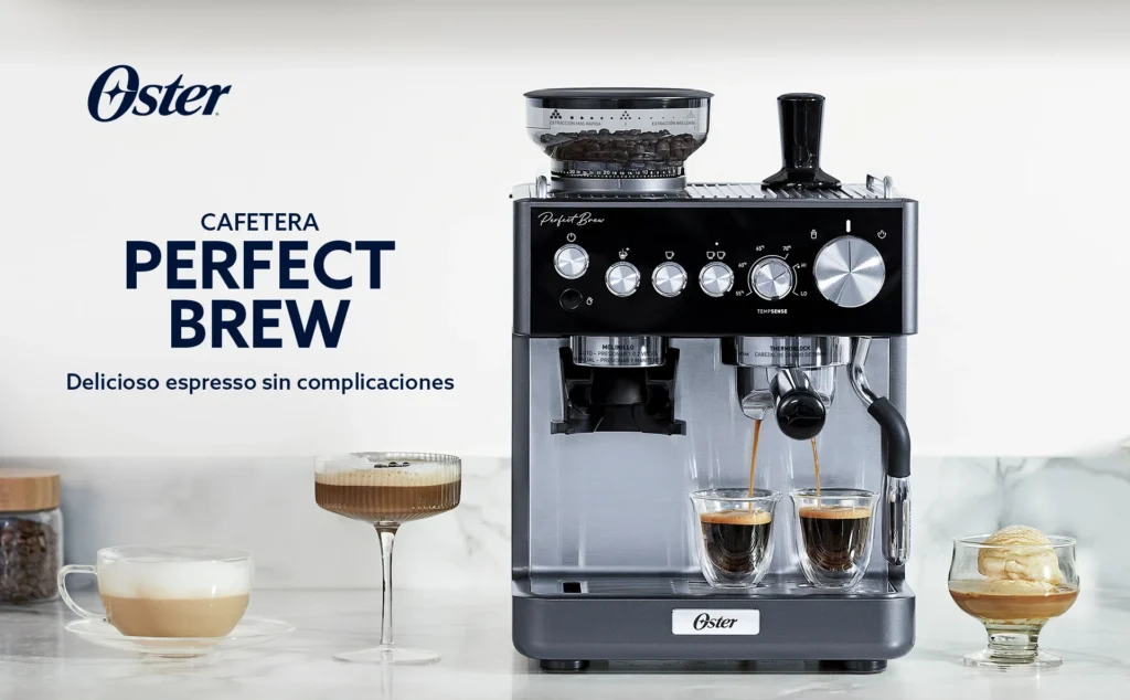 Cafetera Espresso Oster Perfect Brew: disfrutá calidad de cafetería en casa. Con molinillo cónico de 30 niveles y tecnología antiestática, lográs una molienda precisa y sin derrames. Su porta filtro de 58 mm y botón automático permiten extraer espresso simple o doble con sabor intenso. Incluye tubo de vapor Tempsense™ para microespuma perfecta y accesorios profesionales. Ideal para quienes disfrutan el ritual de hacer un café.